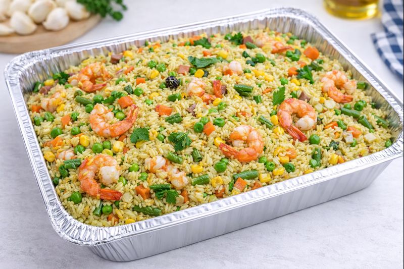A vibrant and savory favorite! Our Nigerian Fried Rice is seasoned perfectly and packed with colorful mixed vegetables, giving it a delicious texture and taste that pairs wonderfully with Peppered Chicken or Grilled Turkey.